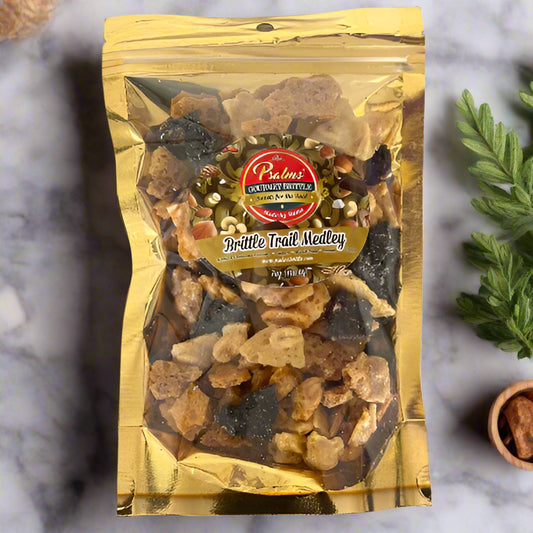 Brittle Trail Medley 7oz (Pecan, Cashew, Peanut, Almond Chocolaxte Coconut, & Mixed Nuts)